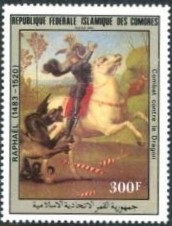 Comores (Archipel des) - 500ème anniversaire de la naissance de Raphaël, "Combat contre le dragon"
