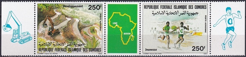 500f., polychrome Y&T N°PA218A Emis en 1985 Poste aérienne Triptyque avec vignette |