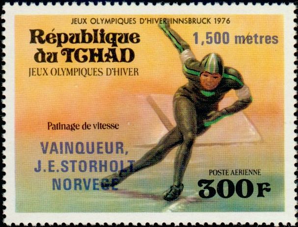 300f., polychrome Y&T N°PA170 Emis en 1976 Poste Aérienne Vainqueurs aux Jeux Olympiques d'hiver, à Innsbruck |