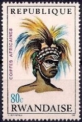 80c., polychrome Y&T N°304 Michel N°330 Emis en 1969 Coiffes africaines Dentelé 13½ |