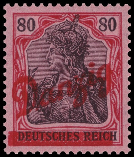 80p., rouge et noir sur rose Y&T N°35 Michel N°40 emitida el 1920 Avec surcharge carmin Danzig en diagonale |