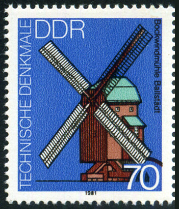 70p., polychrome Y&T N°2315 Michel N°2660 Emis en 1981 Dentelé 14 Anciens moulins à vent en R.D.A |