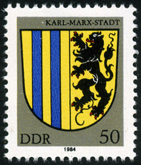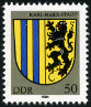 50p., polychrome Y&T N°2493 Michel N°2859 Emis en 1984 Dentelé 14 Armoiries de villes de la R.D.A |