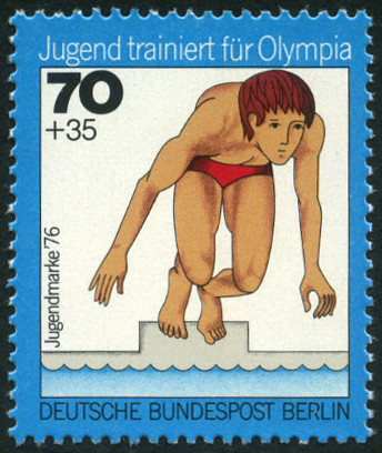 70p. + 35p., polychrome Y&T N°484 Michel N°520 Emis en 1976 Dentelé 14 Surtaxe pour la jeunesse Entraînement de la jeunesse pour les jeux olympiques |