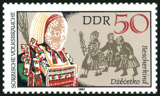 50p., polychrome Y&T N°2370 Michel N°2721 Emis en 1982 Dentelé 13x12½ Folklore des Sorabes |