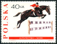 40gr., polychrome et rouge Y&T N°1592 Emis en 1967 Sesquicentenaire du Haras de Janow Podlaski |
