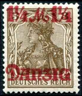 1¼M. sur 3p., brun Y&T N°39 Michel N°27 I Herausgegeben von 1920 Burelage gris ou gris-verdatre droit |