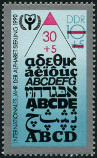 30p. + 15p. s. 10p. + 5p., argent, bleu-vert, rouge et noir Y&T N°2956 Michel N°3353 Issued on 1990 Dentelé 14 Année internationale de l'Alphabétisation |