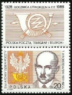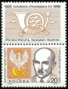 20z., polychrome Y&T N°2969A Issued on 1988 Journée mondiale de la Poste Avec vignette attenante |