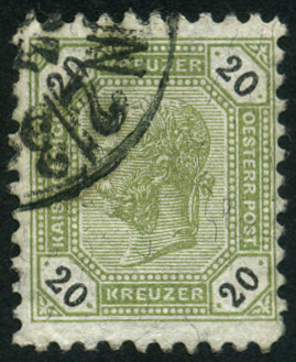 20k., olive Y&T N°61 Michel N°63A Emis en 1891 Valeur en Kreuzer Papier avec fils de soie Chiffres inscrit en noirs Dentelé 10 à 13½ |