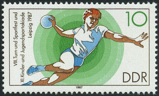 10p., polychrome Y&T N°2727 Michel N°3112 emitida el 1987 Dentelé 14 8e tournoi sportif et 11e spartakiades pour les enfants et adolescents, à Leipzig |