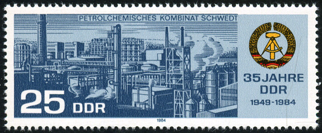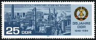 25p., bleu et polychrome Y&T N°2526 Michel N°2895 Emis en 1984 Dentelé 14 35e anniversaire de la République Démocratique Allemande |