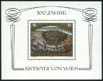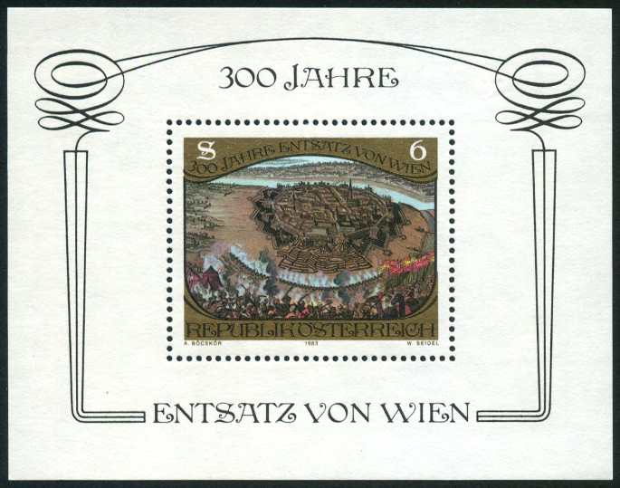 6s., polychrome Y&T N°BF11 Michel N°BL6 Emis en 1983 300e anniversaire du dégagement de la ville de Vienne Timbre n° 1578 sur feuillet Dentelé |