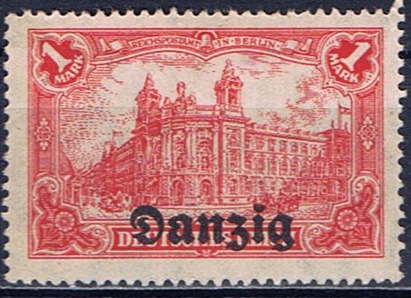 1m., rouge Y&T N°8 Michel N°8 Herausgegeben von 1920 Surcharge Danzig. |