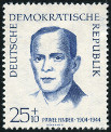 25p. + 10p., bleu Y&T N°597 Michel N°884 Herausgegeben von 1962 Dentelé 14 Filigrane "DDR" Antifascistes internationaux |