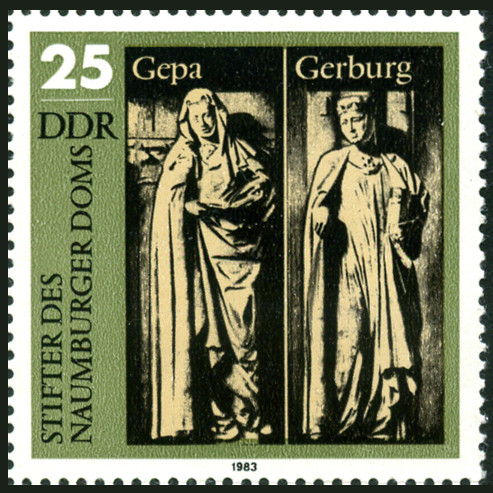 25p., polychrome Y&T N°2452 Michel N°2809 Emis en 1983 Dentelé 13 Fondateurs de la cathédrale de Naumburg Statues grandeur nature |