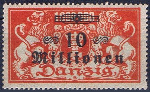 10Mn sur 1000000m., orange Y&T N°160 Michel N°168 Herausgegeben von 1923 |