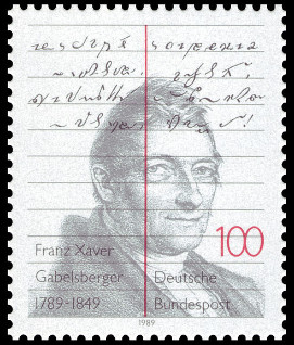 100p., noir, rouge et gris-argent Y&T N°1255 Michel N°1423 emitida el 1989 Dentelé 14 Bicentenaire de la naissance du fondateur de la sténographie allemande Franz Xaver Gabelsberger |