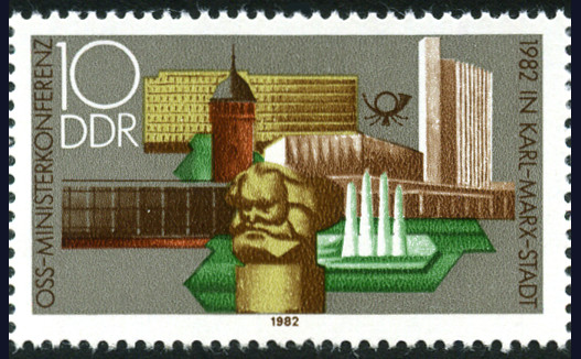 10p., polychrome Y&T N°2383 Michel N°2732 Emis en 1982 Dentelé 14 13e conférence ministérielle de l'Organisation pour le coopération des Pays socialistes dans le domaine des postes et télécommunications, à Karl-Marx-Stadt |