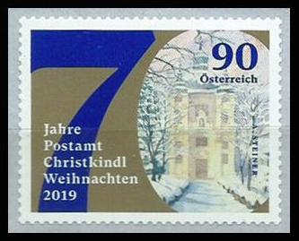 90c., polychrome Y&T N°3339 Herausgegeben von 2019 Chiffre du jubilé et aquarelle représentant l´église baroque de Christkindl à Steyr en Haute-Autriche Emis en roulette |