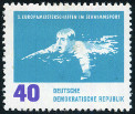 40p., turquoise et violet Y&T N°624 Michel N°911 Herausgegeben von 1962 Dentelé 14 Filigrane "DDR" 10e championnats d'Europe de natation, à Leipzig |