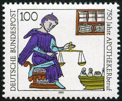 100p., polychrome Y&T N°1322 Michel N°1490 emitida el 1991 Dentelé 14 750e anniversaire de la profession de pharmacien |