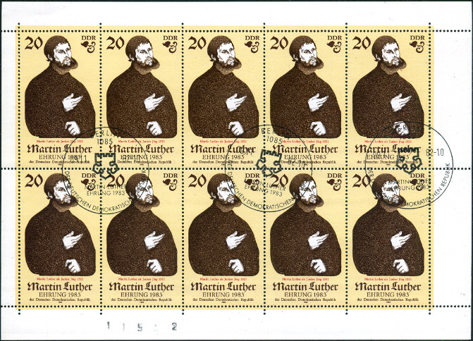 200p., polychrome Y&T N°2400a Michel N°2755a Emis en 1982 Dentelé 14 500e anniversaire (1983) de sa naissance Feuillet de 10 timbres |