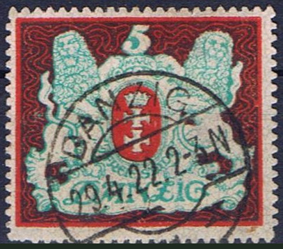 5m., rouge, noir et vert Y&T N°120 Michel N°87 Emis en 1921 Filigrane A Percé en zigzag Burelage gris |
