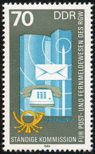 70p., polychrome Y&T N°2505 Michel N°2873 Emis en 1984 Dentelé 14 25e session de la Commission des postes et télécommunications du COMECON |