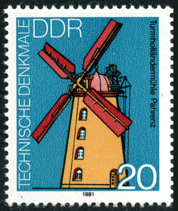 20p., polychrome Y&T N°2313 Michel N°2658 Emis en 1981 Dentelé 14 Anciens moulins à vent en R.D.A |