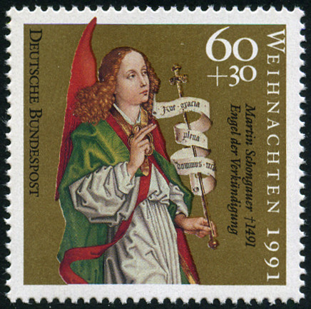 60p. + 30p., polychrome et or Y&T N°1410 Michel N°1578 Herausgegeben von 1991 Dentelé 14 Détails d'oeuvres du peintre et graveur Martin Schongauer Noël |
