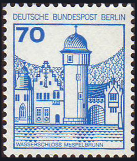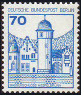 70p., bleu Y&T N°500A Michel N°538AI Emis en 1977 Dentelé 14 Légende BERLIN Châteaux |