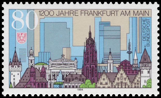 80p., polychrome Y&T N°1549 Michel N°1721 Emis en 1994 Dentelé 13x12½ 1200e anniversaire de la ville de Francfort-sur-le-Main |