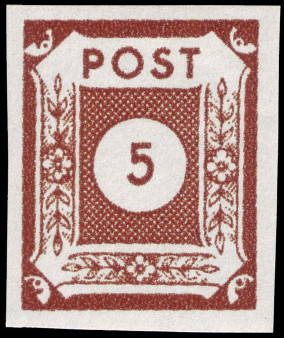 5p., brun-jaune Y&T N°1A Michel N°42 Emis en 1945 Non dentelé |