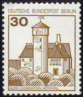 30p., bistre-olive Y&T N°498 Michel N°534AI Emis en 1977 Dentelé 14 Légende BERLIN Châteaux |