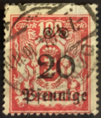20p. sur 100m., rouge-carmin Y&T N°167 Michel N°183 Herausgegeben von 1923 Type de 1921-22 surchargé Filigrane C |
