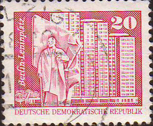 20p., rose carminé Y&T N°2842E Emis en 1989 Dentelé 14½x14 Papier blanc brillant Gomme brillante Timbre émis en roulette Constructions socialistes en R.D.A |