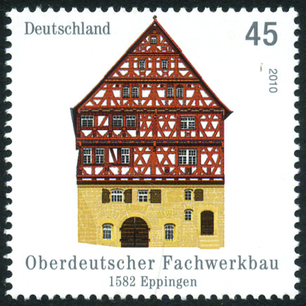 45c., polychrome Y&T N°2648 Michel N°2823 Emis en 2010 Dentelé 13¾ Impression offset Maisons à Colombages allemandes |