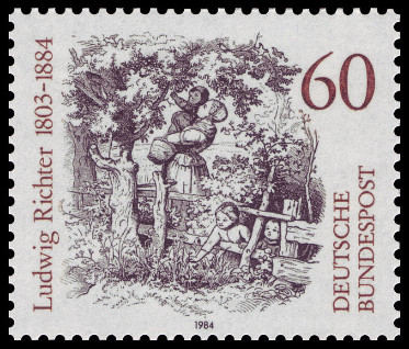 60p., carmin et noir Y&T N°1045 Michel N°1213 Emis en 1984 Dentelé 14 Centenaire de la mort de Ludwig Richter, peintre et illustrateur |