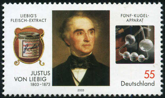55c., polychrome Y&T N°2164 Michel N°2337 Emis en 2003 Dentelé 14 Bicentenaire de la naissance du chimiste Justus von Liebig |