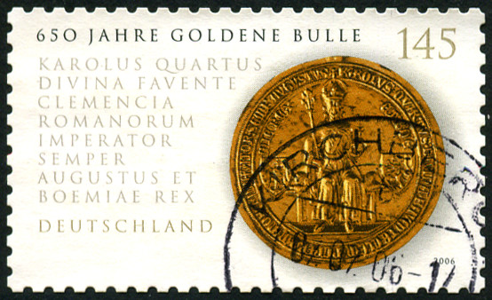145c., polychrome Y&T N°2338 Michel N°2516 Herausgegeben von 2006 Dentelé 10 Timbre autoadhésif 650e anniversaire de la "Bulle d'Or" |