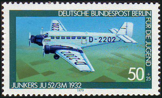 50p. + 25p., polychrome Y&T N°553 Michel N°593 Emis en 1979 Dentelé 14 Surtaxe pour la jeunesse Avions |
