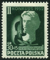 30gr.+15gr., vert foncé Y&T N°689 Emis en 1952 2ème concours international de violon |