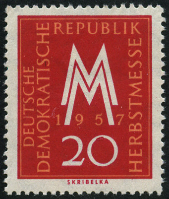 20p., rouge-carmin et rouge Y&T N°312 Michel N°596 Emis en 1957 Dentelé 13½x13 Filigrane "DDR" |