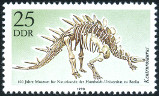 25p., polychrome Y&T N°2925 Michel N°3325 Emis en 1990 Dentelé 12½-13 Centenaire du Musée d'Histoire naturelle de l'Université Humbolt, de Berlin Squelettes d'animaux préhistoriques |