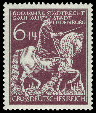 6p. + 14p., brun-lilas Y&T N°814 Emis en 1944 Dentelé 14 6e centenaire de l'autonomie d'Oldenbourg Grande Allemagne |