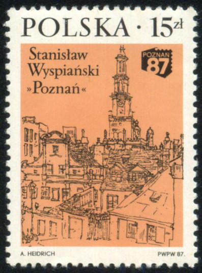 15z., orange et noir Y&T N°2914 Issued on 1987 Hôtel de ville de Poznan |