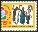 15p. + 5p., polychrome Y&T N°617 Michel N°906 Herausgegeben von 1962 Dentelé 14 Filigrane "DDR" 8e festival mondial de la jeunesse et des étudiants, à Helsinki Les timbres n° 616 et 617 se tiennent par paire |