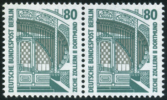 80p.*2, vert-noir et bistre Y&T N°753a Emis en 1987 Dentelé 14 Légende BERLIN Paire horizontale |