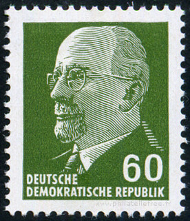 60p., vert Y&T N°564DA Michel N°1080 emitida el 1964 Dentelé 14 Filigrane "DDR" |